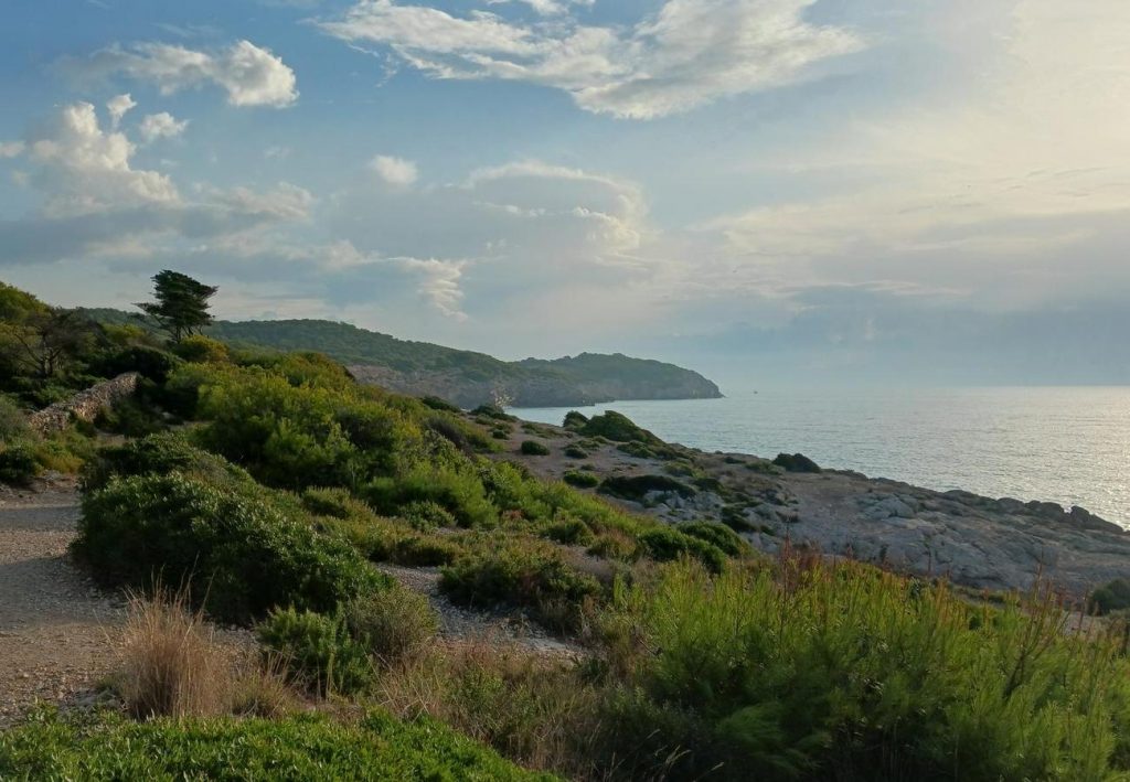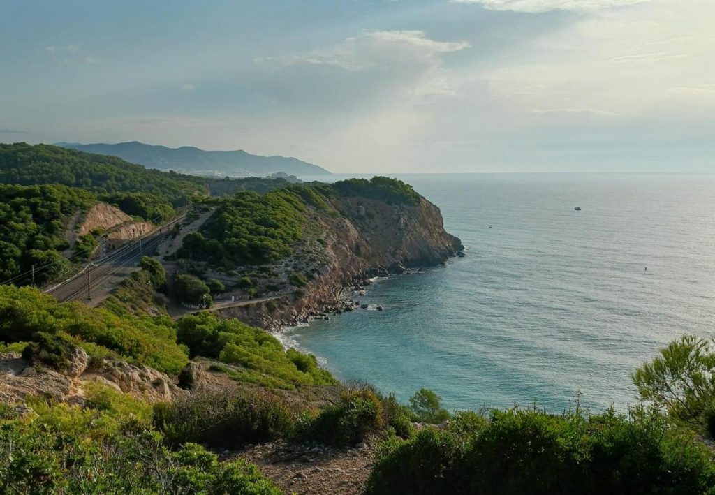 La ruta avança paral·lela a la via del tren i a la costa, permetent gaudir de miradors, cales tranquiles i la vegetació típica del Garraf. A mesura que s’avança, apareixen les primeres panoràmiques de Sitges.